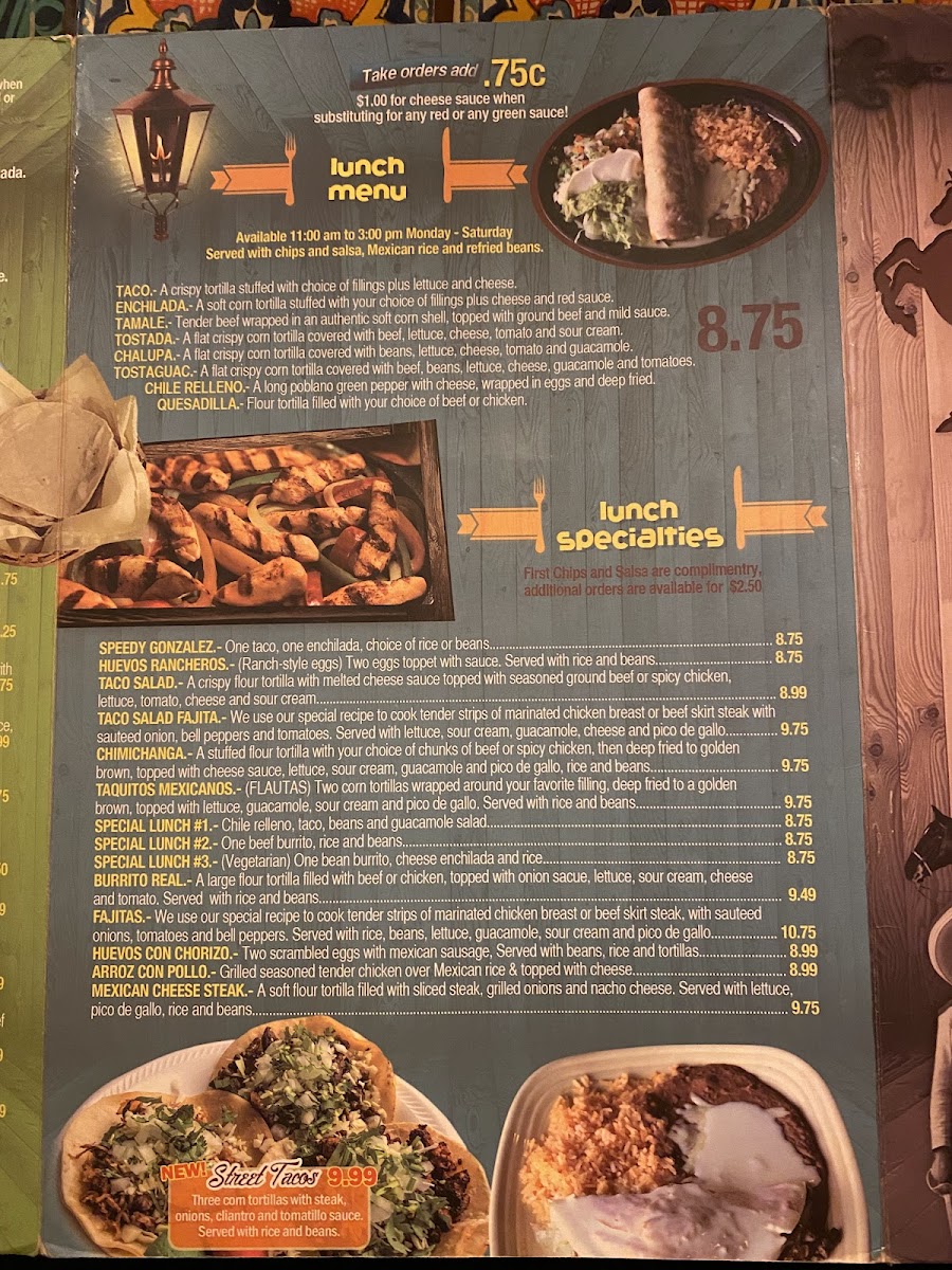 - Seafood and fajita options provide lighter, flavorful alternatives